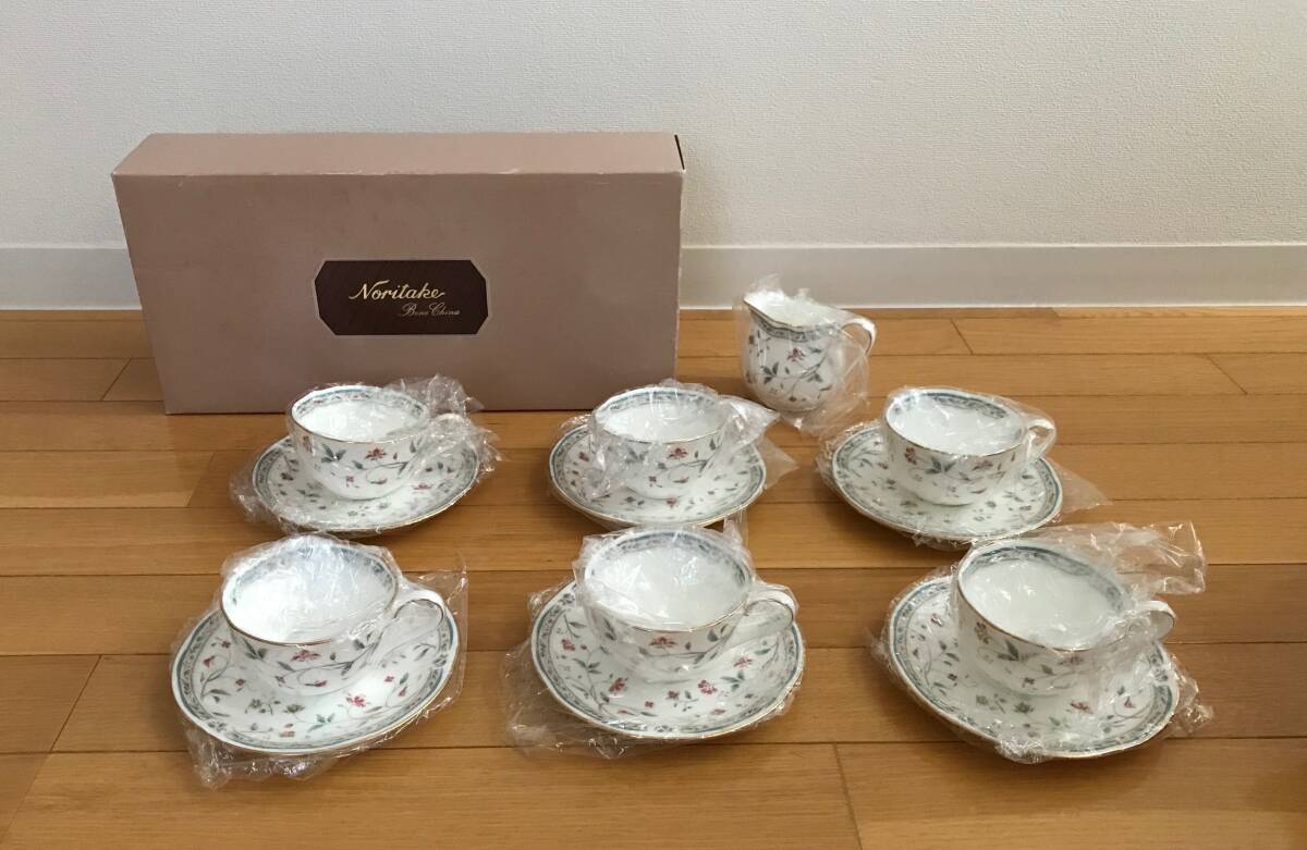 - Noritake/ノリタケ ボーンチャイナ 花更紗 カップ&ソーサー 6客組 クリーマー付 未使用品 日本製 外箱に汚れあり