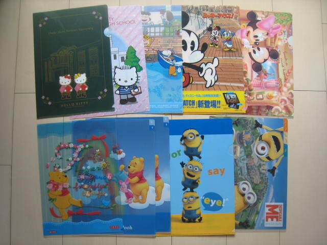 - 即決/非売品 ノベルティ/ミニオンズ スヌーピー USJ/ディズニー/ミッキーマウス/ハローキティ/プーさん A4クリアファイル 計11枚