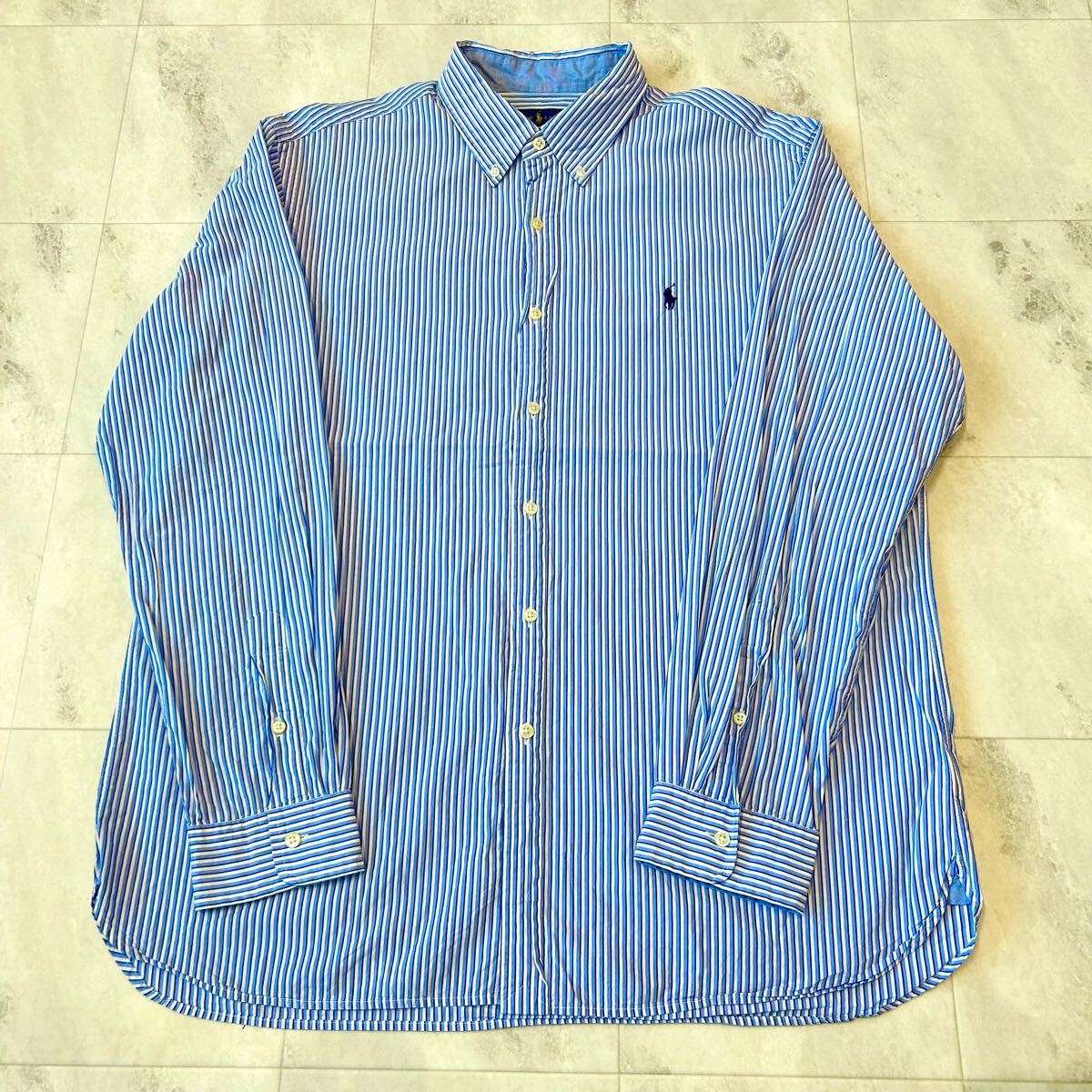 - Ralph Lauren CRINKLE FINISH ラルフローレン ストライプ ポニー 刺繍 ボタンダウン 長袖シャツ 綿99% ポリウレタン1% sizeXL