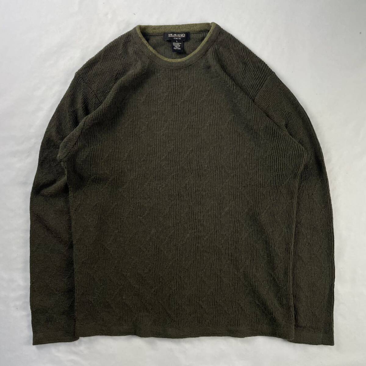 > Euro Vintage イタリア製 MURANO アクリル63% ウール27% ナイロン10% くすみカラー 立体 3D アーガイル ダイヤ チェック デザインニット