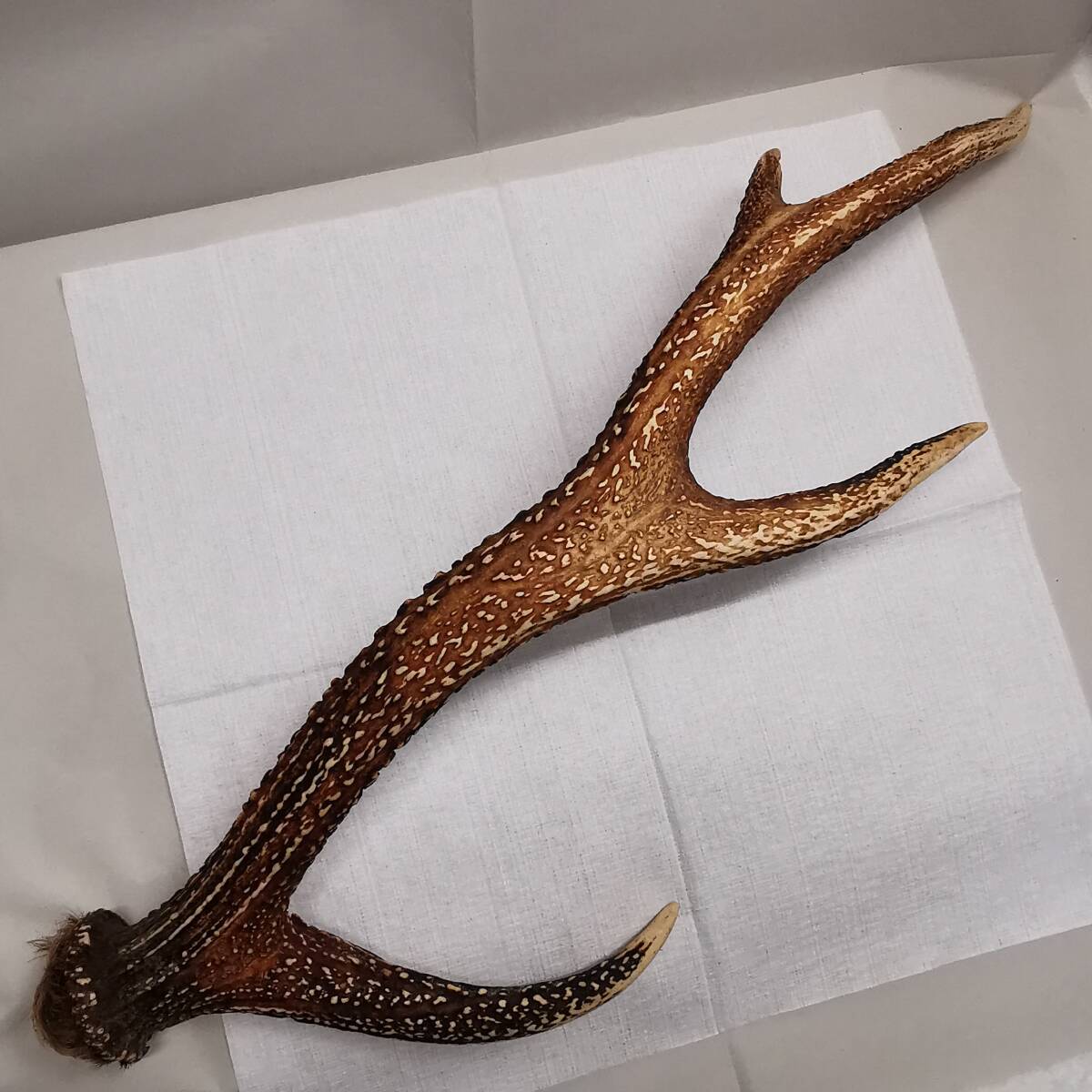 - ◆鹿の角 1本 重さ:520g サイズ:約 53cm 根元周り長:約 11.8cm◆標本 剥製 オブジェ 飾り 加工材料 犬のおもちゃ シカ/産地等詳細不明