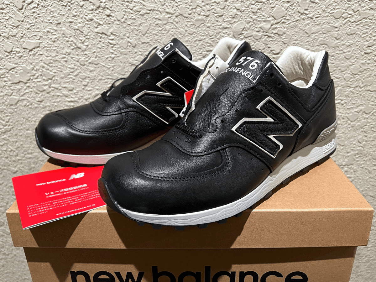 > 廃番 オールレザー New Balance LM576BKU UK製 US8.5 限定 M576 NB 本皮 天然皮革 ブラック 黒 イギリス製 Made In England スニーカー