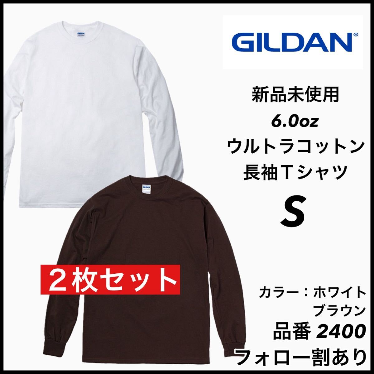 - 新品未使用 ギルダン GILDAN 6oz ウルトラコットン 無地 長袖Tシャツ ロンT 白ホワイト ブラウン 2枚セット Sサイズ
