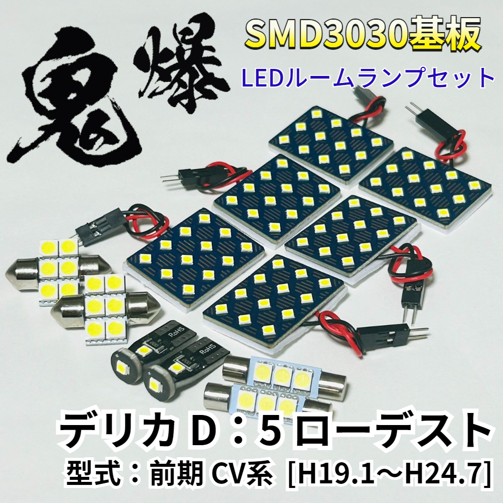- デリカ D:5 ローデスト前期 CV系 [H19.1~H24.7] ミツビシ LED ルームランプ 鬼爆基板 SMD3030 ルーム球 室内灯 車内灯 パーツ 車検対応