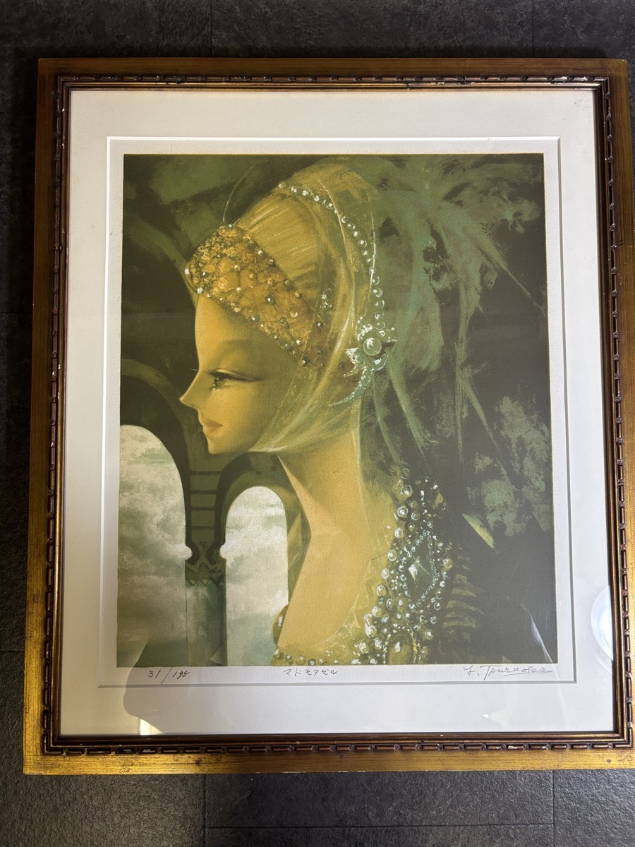 『真作 鶴岡義雄 リトグラフ 31/195「マドモアゼル」画寸47cm×56cm 茨城県出身 二科会常任理事 日本芸術院会員』 拍卖