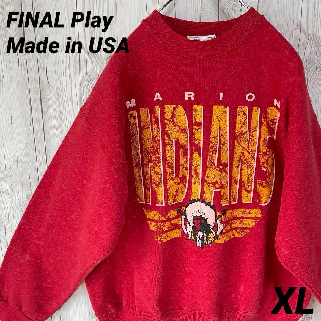 - USA製 FINAL Play スウェットトレナー デカビックプリント メンズXLサイズ インディアン 赤レッド アメリカ MADE IN USA