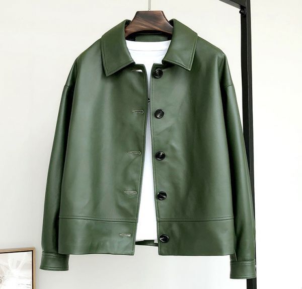 > 本革 ステンカラージャケット レディース レザーコート 女性 ラム革 ゆったり オーバービジネス通勤 スタイリッシュ 防寒 真冬 秋冬 DJ319