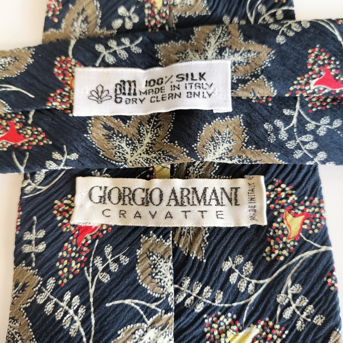 - GIORGIO ARMANI(ジョルジオアルマーニ)紺葉っぱ花ネクタイ