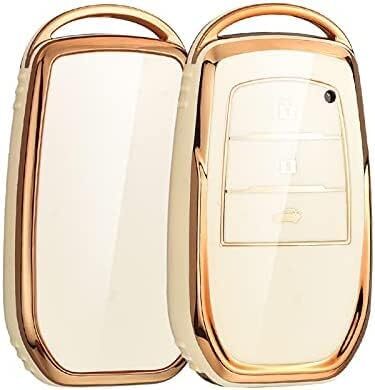> TOYOTA向けの キーケース キーホルダー キーカバー キー保護 トヨタ 新型ハリアー 80系 ヤリスクロス 3ボタン ゴールド&ホワイト