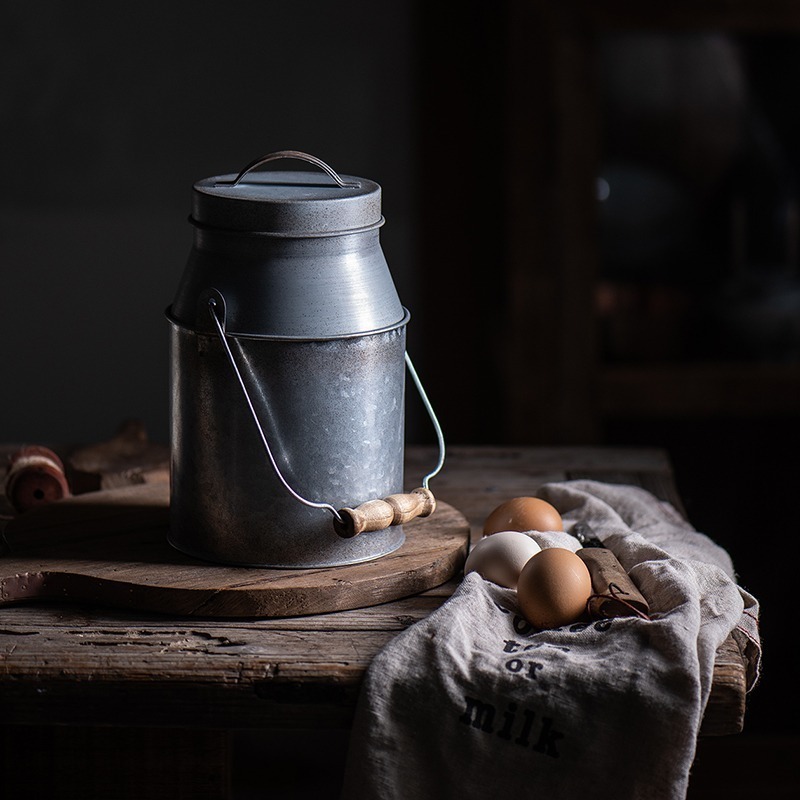 - LDL833# 金属 ハンドルつき タンク 容器 保存 缶 キッチン リビング 雑貨 撮影用 映え 小道具 花器 花瓶 食品 クラフト