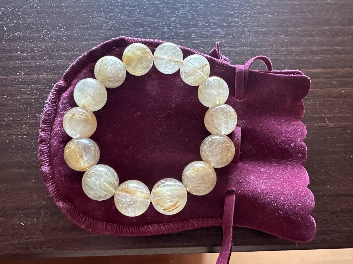 - ★☆最高級 タイチン ゴールドルチル ブレスレット 16mm玉 金針濃密☆★