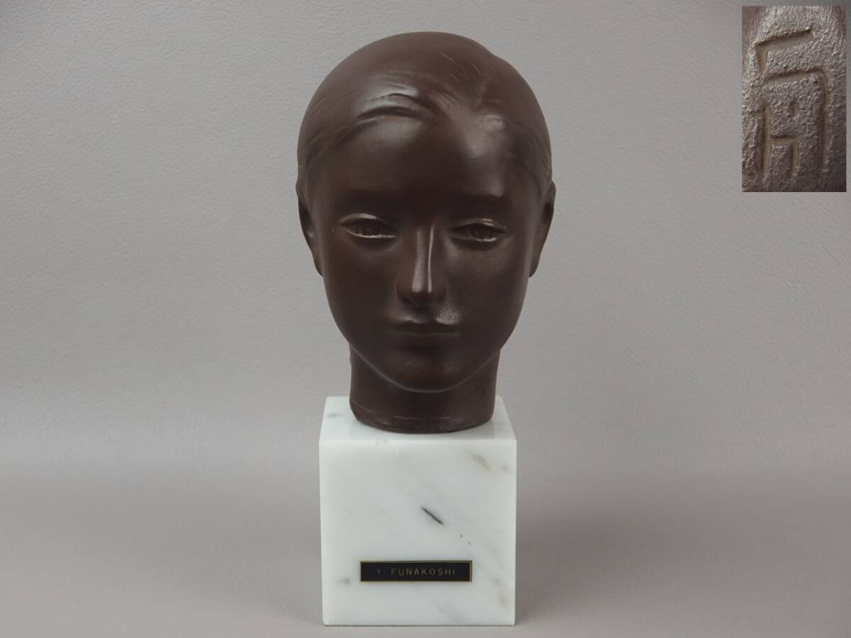 - 【骨董・彫刻】★舟越保武★★銅ブロンズ美人像 「ローラ」③ 大理石台 fp103yb.8