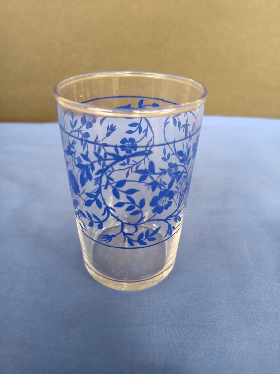- 昭和レトロ■花柄 ブルー グラス コップ