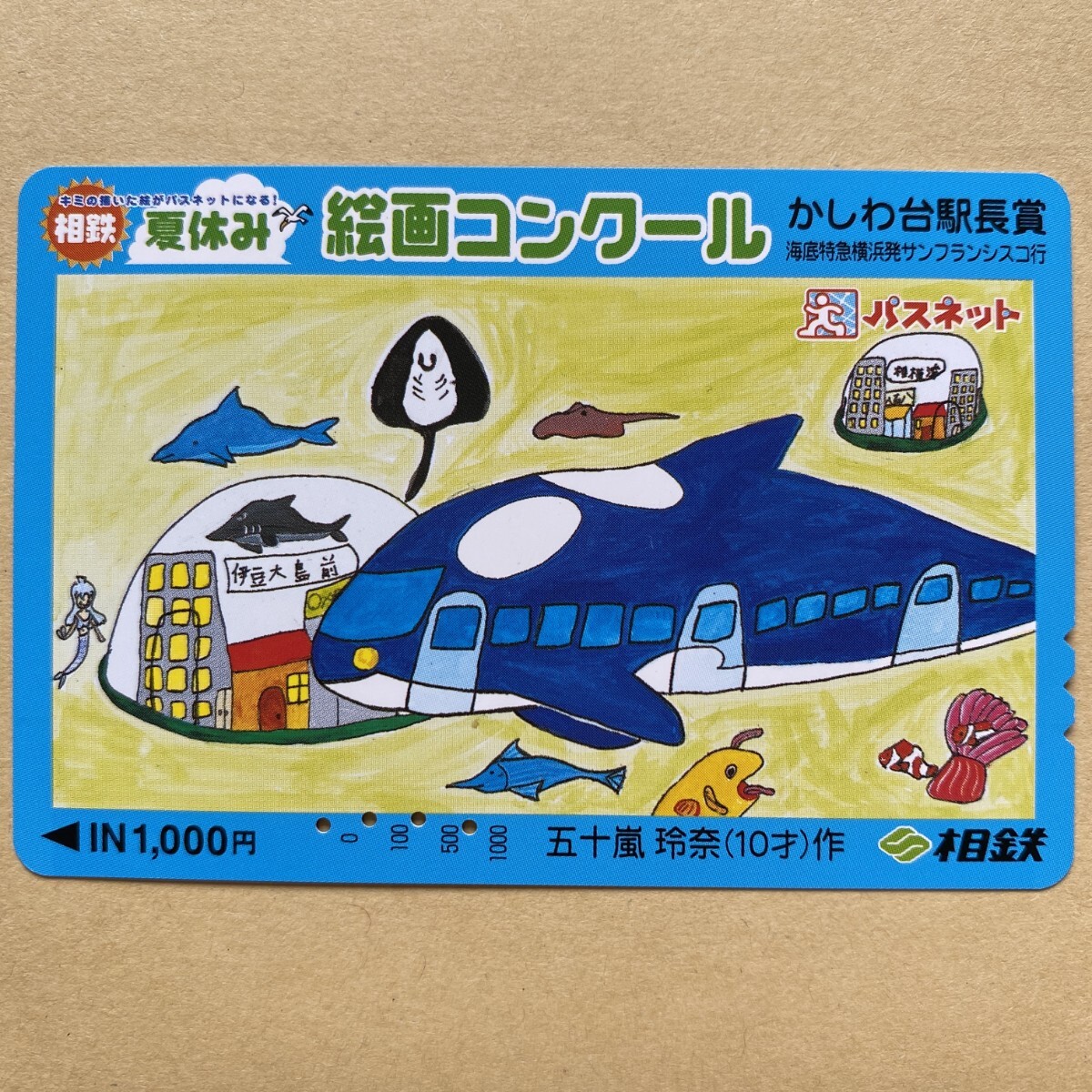 - 【使用済】 パスネット 相模電鉄 相鉄 夏休み絵画コンクール かしわ台駅長賞 海底特急横浜発サンフランシスコ行