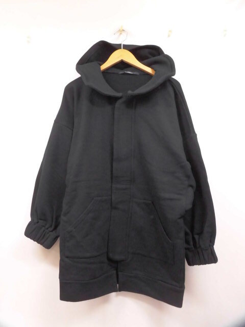 > 日本製 LIMI feu リミフゥ LD-T11-038 リミヤマモト ヨウジヤマモト スウェットジャケット 襟ワイヤー入り ロングパーカー ブラック 黒 S