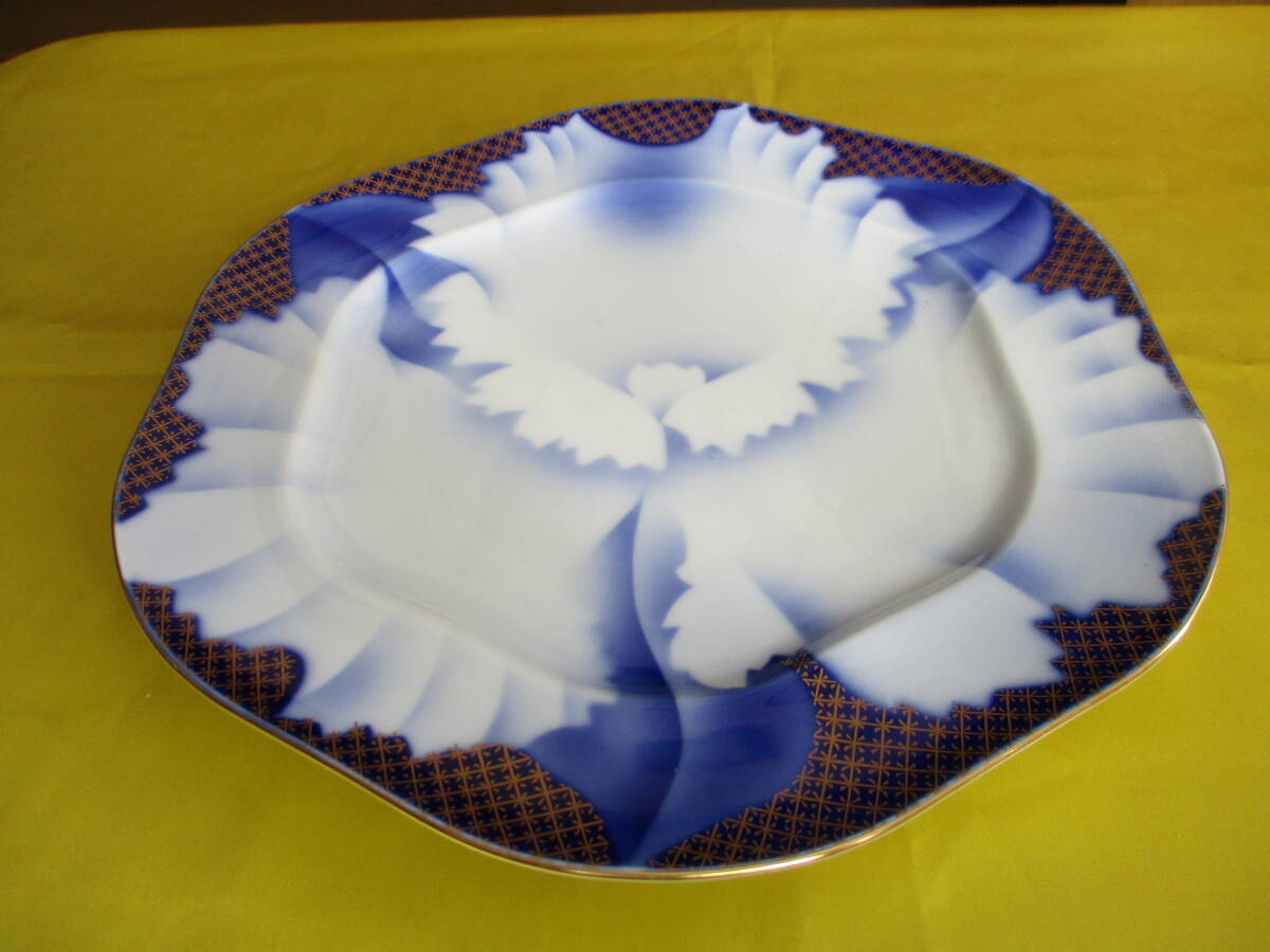 - 深川製磁 宮内庁御用達 牡丹図 六角皿 横約24.8Cm 縦約26Cm 高さ約2Cm