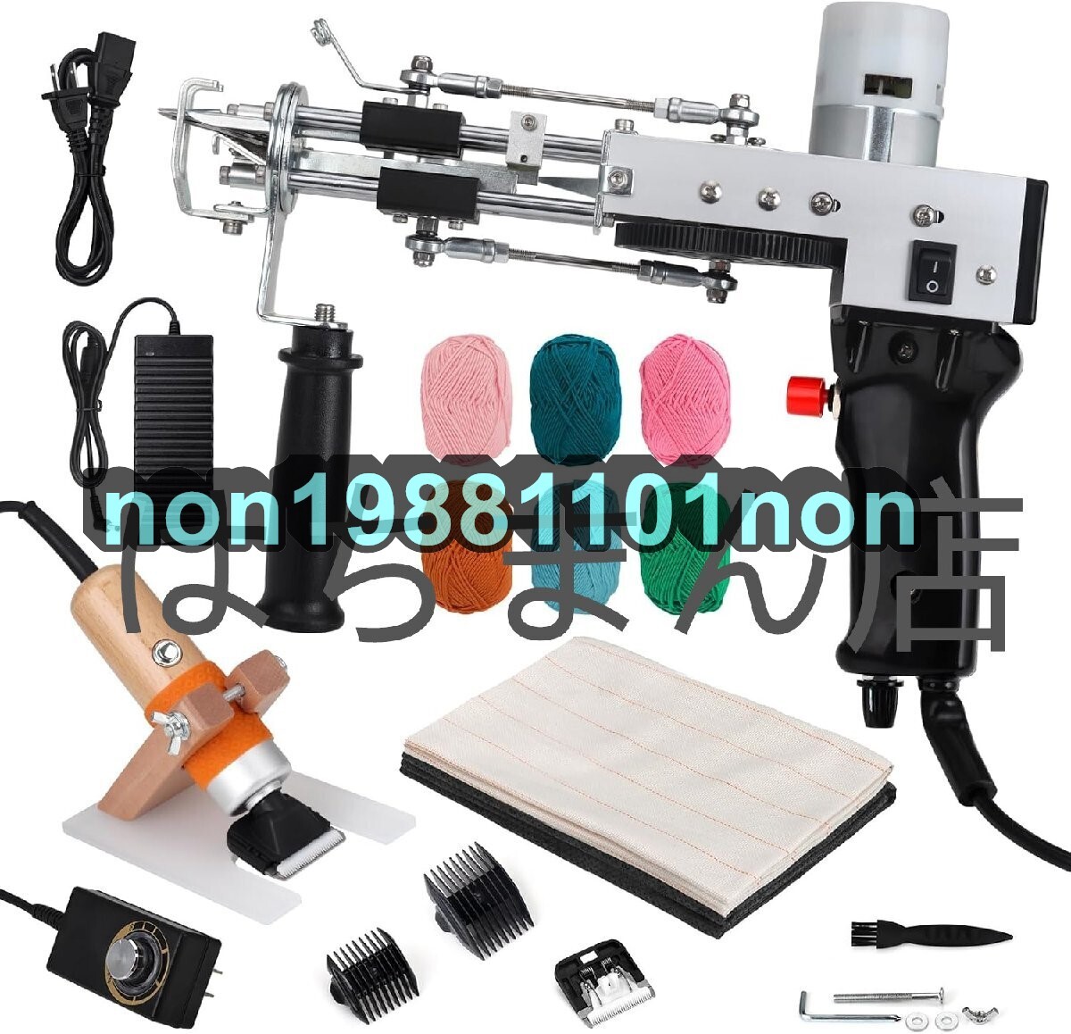 - タフティングガン ラグ編み機 カーペットトリマー付き タフティング生地 6ロールタフティング糸 (ブラック)