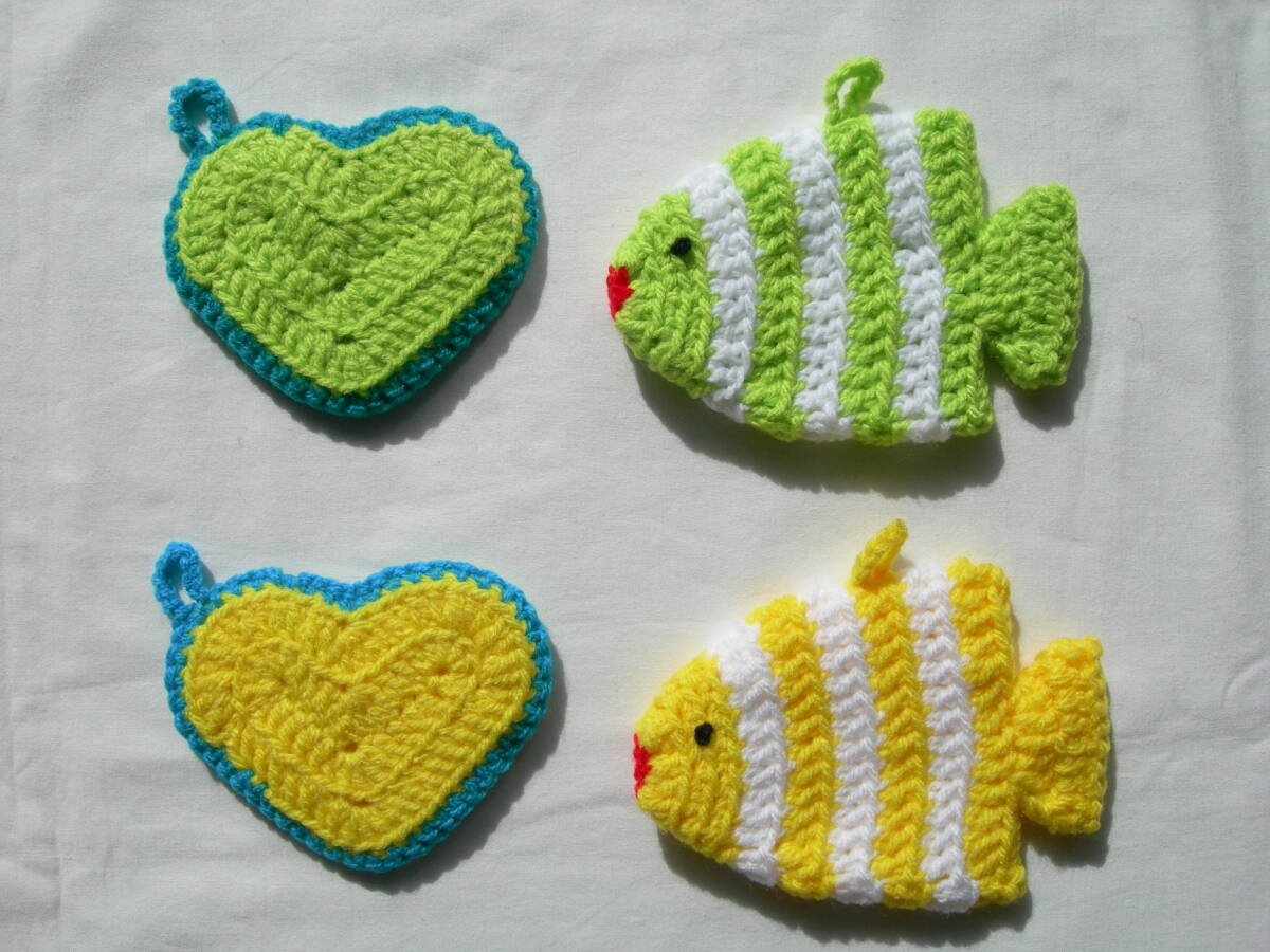 - アクリルタワシ ハンドメイド(黄緑・黄色)4個セット 新品 節約 エコ