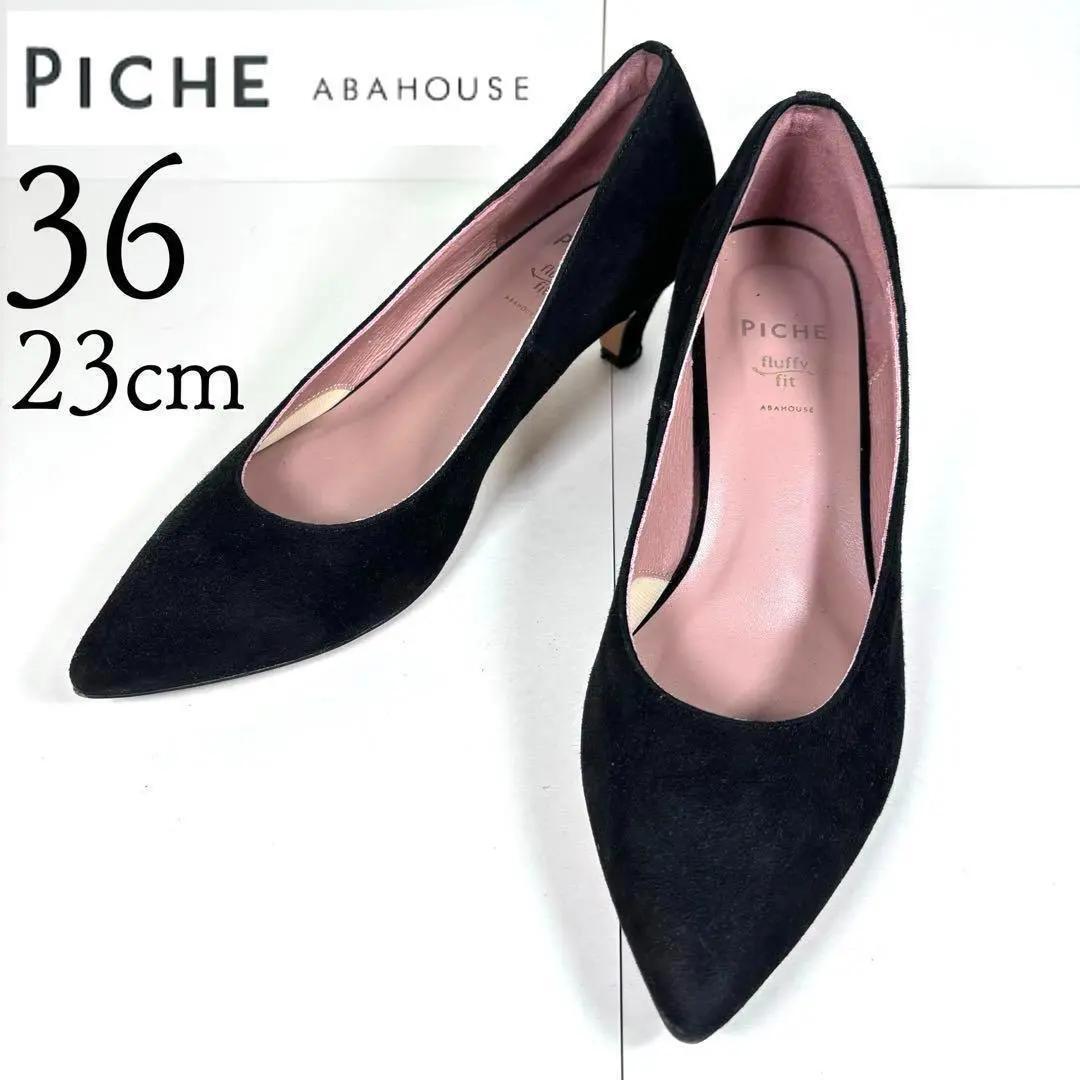 - 美品 ピシェ アバハウス 23 スエード ポインテッドトゥ パンプス 黒