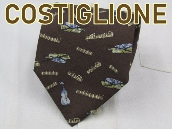 - 【音楽 音符 楽器】【カスティリオーネ】AB 481 カスティリオーネ COSTIGLIONE ネクタイ 茶系 音楽 プリント