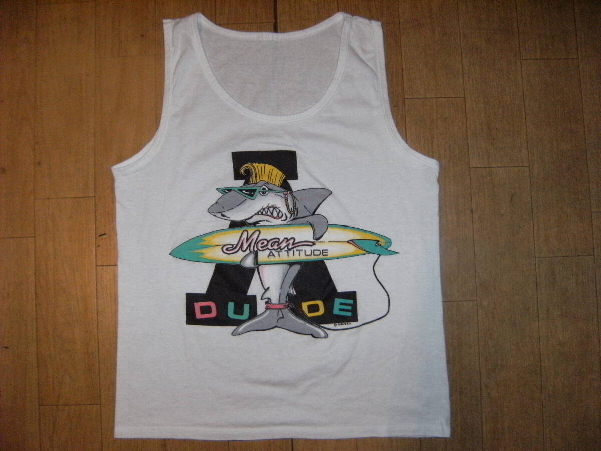 - 昭和レトロ★アメリカ製★80年代 ボディビル,格闘技,プロレス,ゴールドジム★サメ サーフィン タンクトップ★ハワイ ヤンキー 暴走族 不良