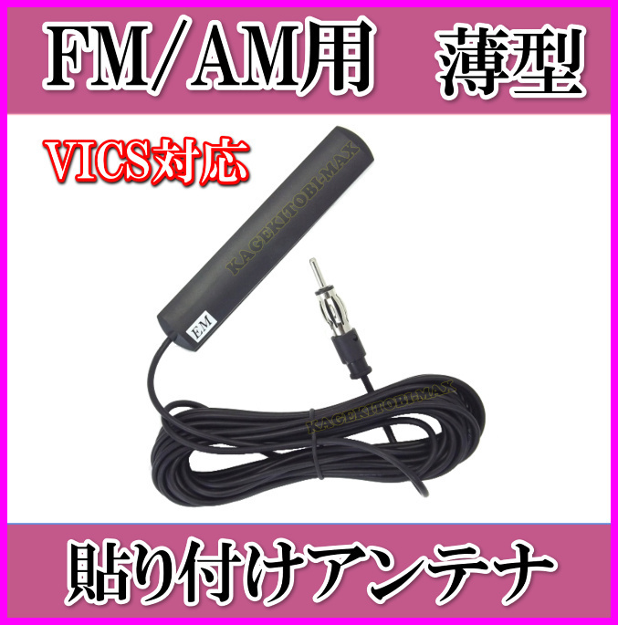 - 隠せる FM/AM ラジオ 薄型 貼り付け ワイドFM&VICS 対応 アンテナ -B ケーブル 5m JASOプラグ端子付 新品 /船舶 自動車 等に 過激飛びMAX