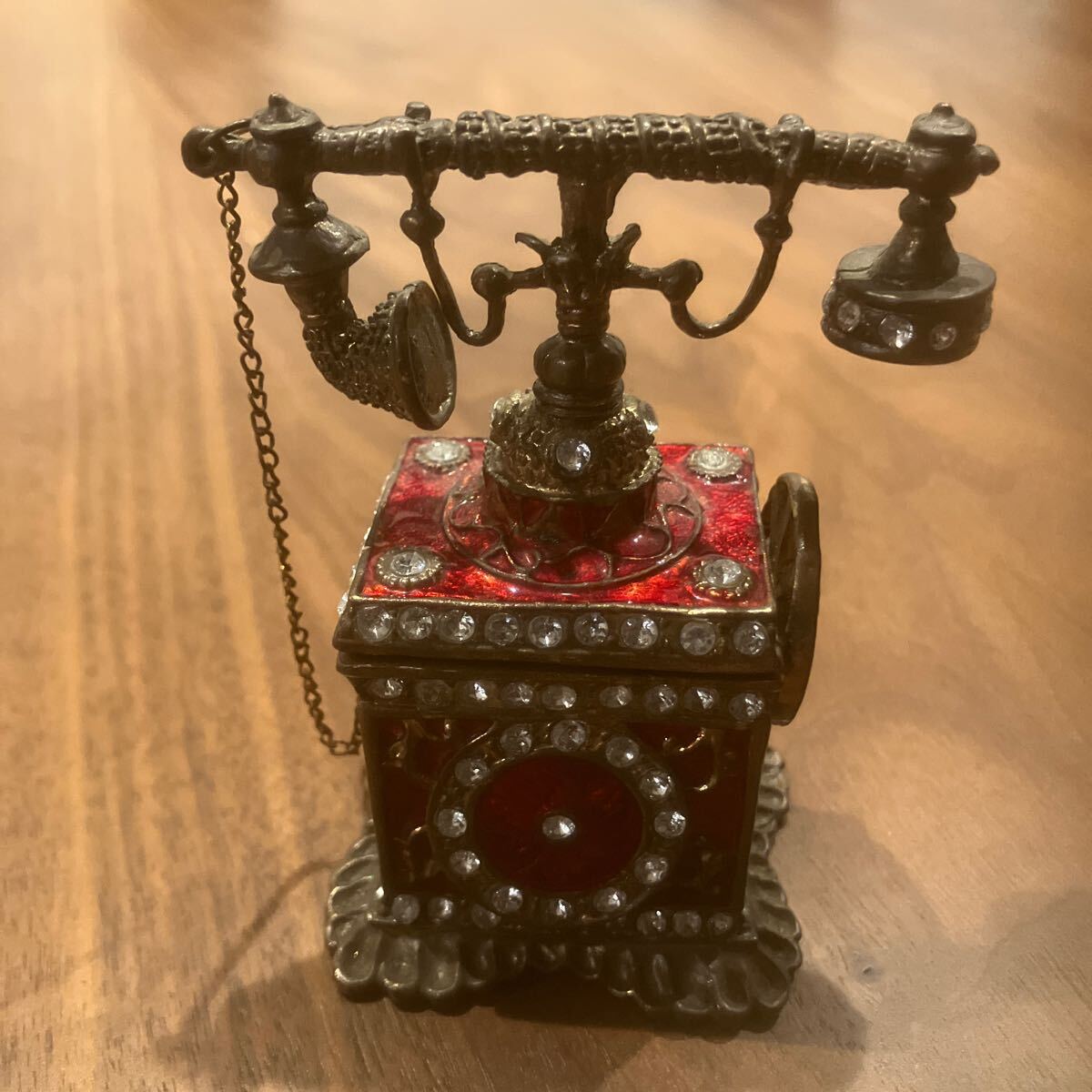 - アンティーク 電話型の小物入れ キラキラ 可愛い 蚤の市 小物 骨董 コレクター 卓上 インテリア レトロ