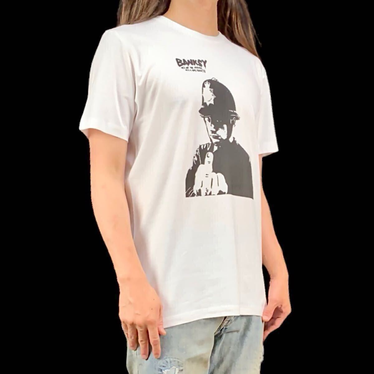 - 新品 BANKSY バンクシー POLICE ポリス FUCK YOU 中指 挑発 ジェスチャー ステンシル グラフィティ アート Tシャツ ユニセックス Lサイズ