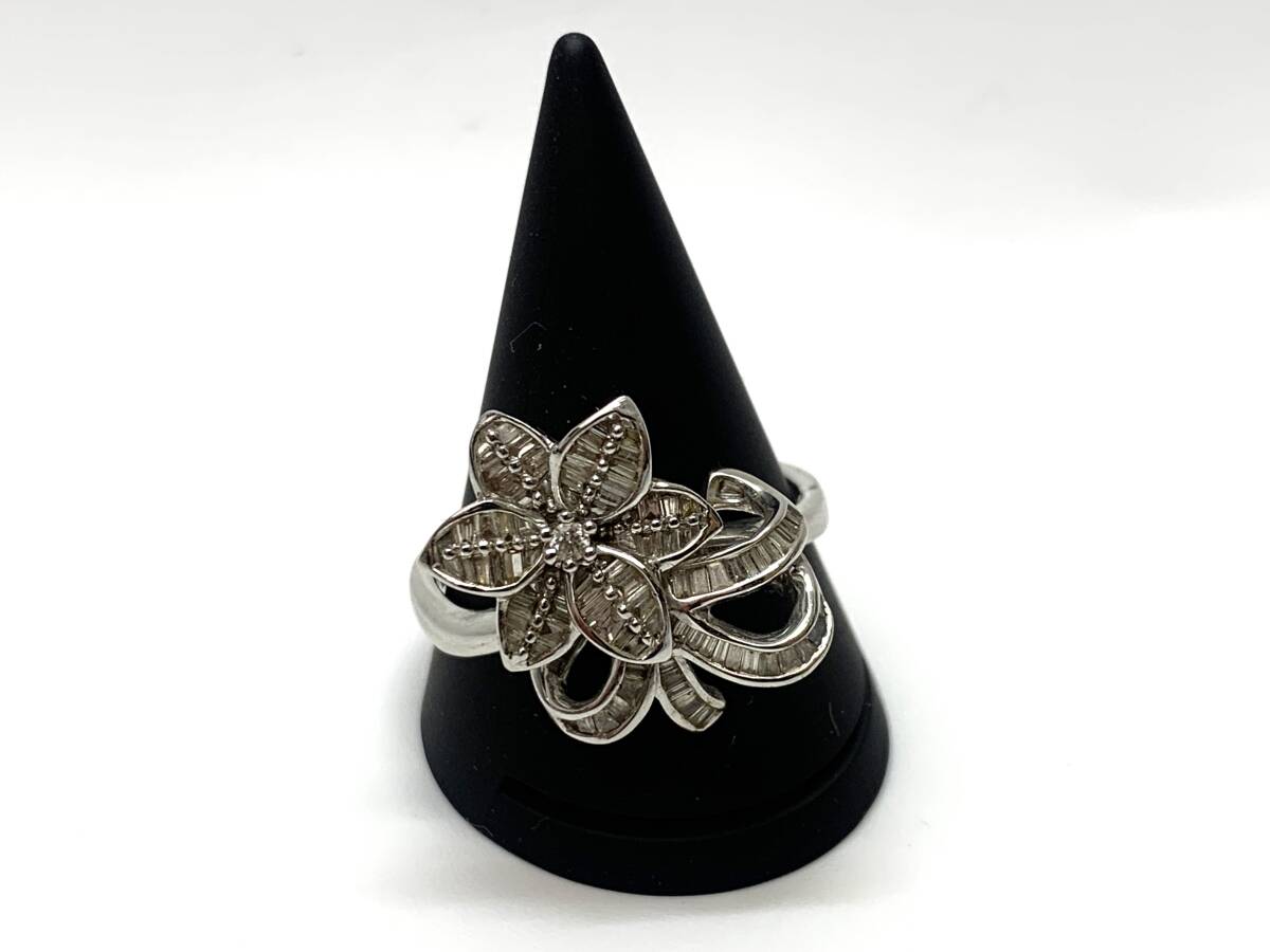 - 【送料無料】K18WG ホワイトゴールド フラワー D1.00 総計6.4g #23 23号 約6g 投資 店舗受取り可