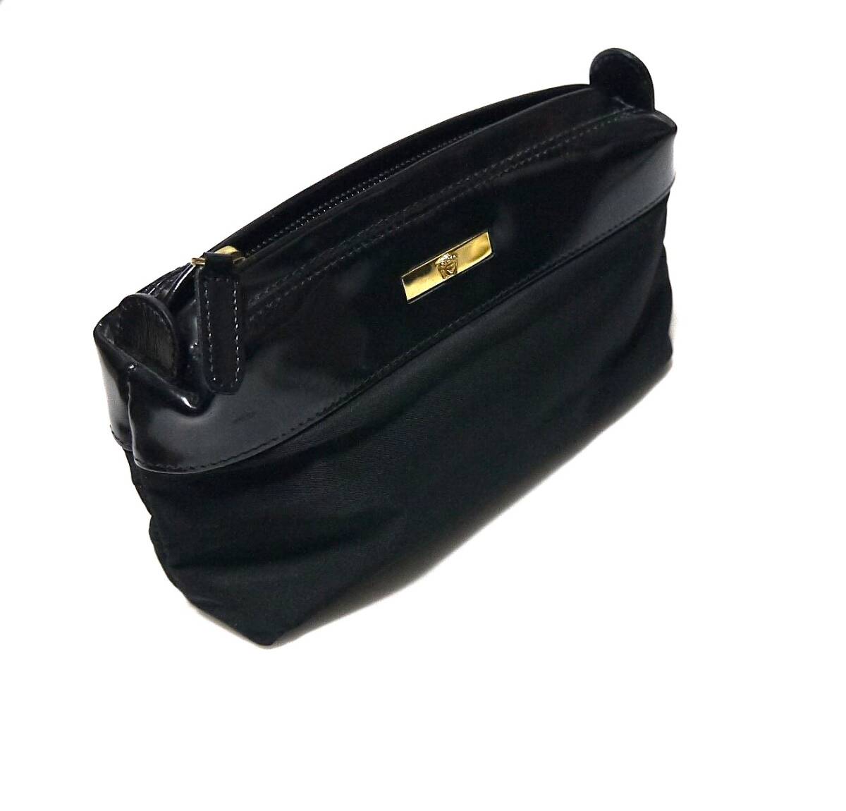 > $ 美品 $ レア■ VERSACE ■ ジャンニ・ヴェルサーチ■ メデューサ ロゴ■ ナイロン× エナメル レザー製■ ポーチ 小物入れ■ 黒 ブラック
