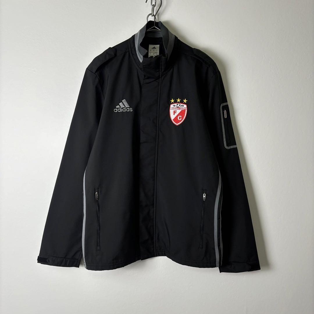 - Mサイズ 古着 adidas アディダス サッカー ワッペン 刺繍ロゴ ナイロンジャケット ソフトシェル トラックジャケット ブラック