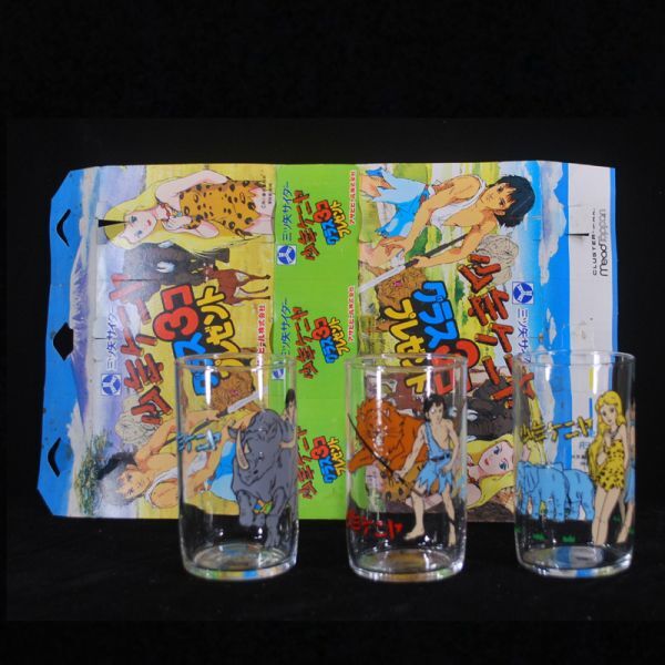 - ●1868●三ツ矢サイダー ◆ 少年ケニア グラス 元箱付 3個 1セット ◆ 未使用置き古し品です。