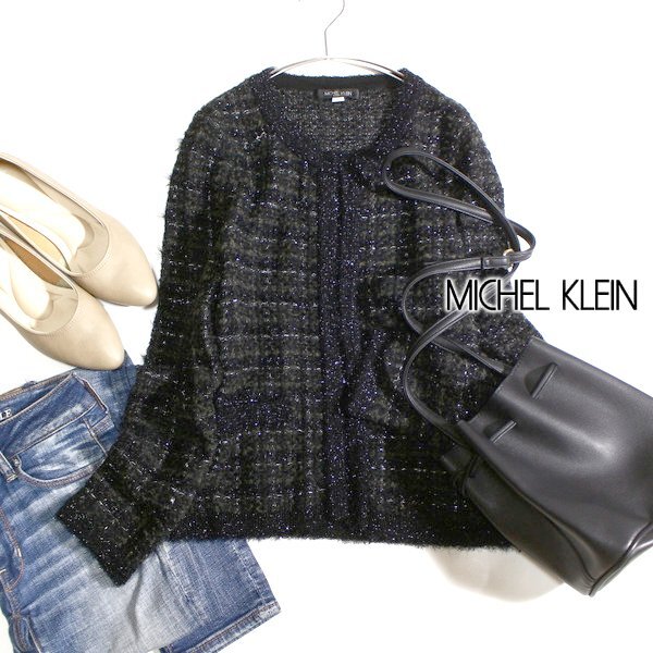 - 美品 MICHEL KLEIN ミッシェルクラン 上品綺麗め ウール混紡 ブークレミックス ニットジャケット 38号 M 春 秋 合服 24C10