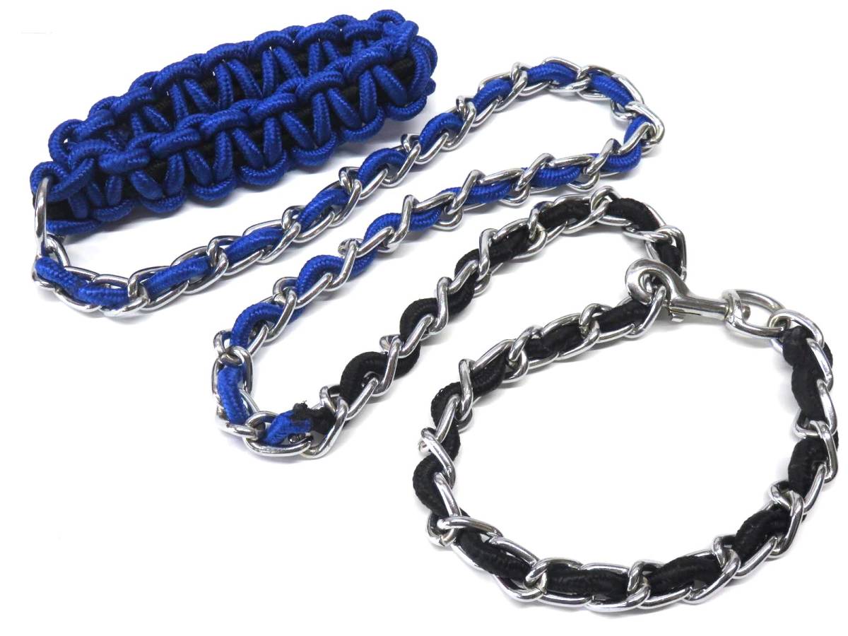 - チェーンリード 調節可能 首輪 L 青 中型犬 大型犬 全長158cm チェーン幅1.5cm 青から黒のグラデーション 丈夫な鉄 編み込み ブルー 散歩