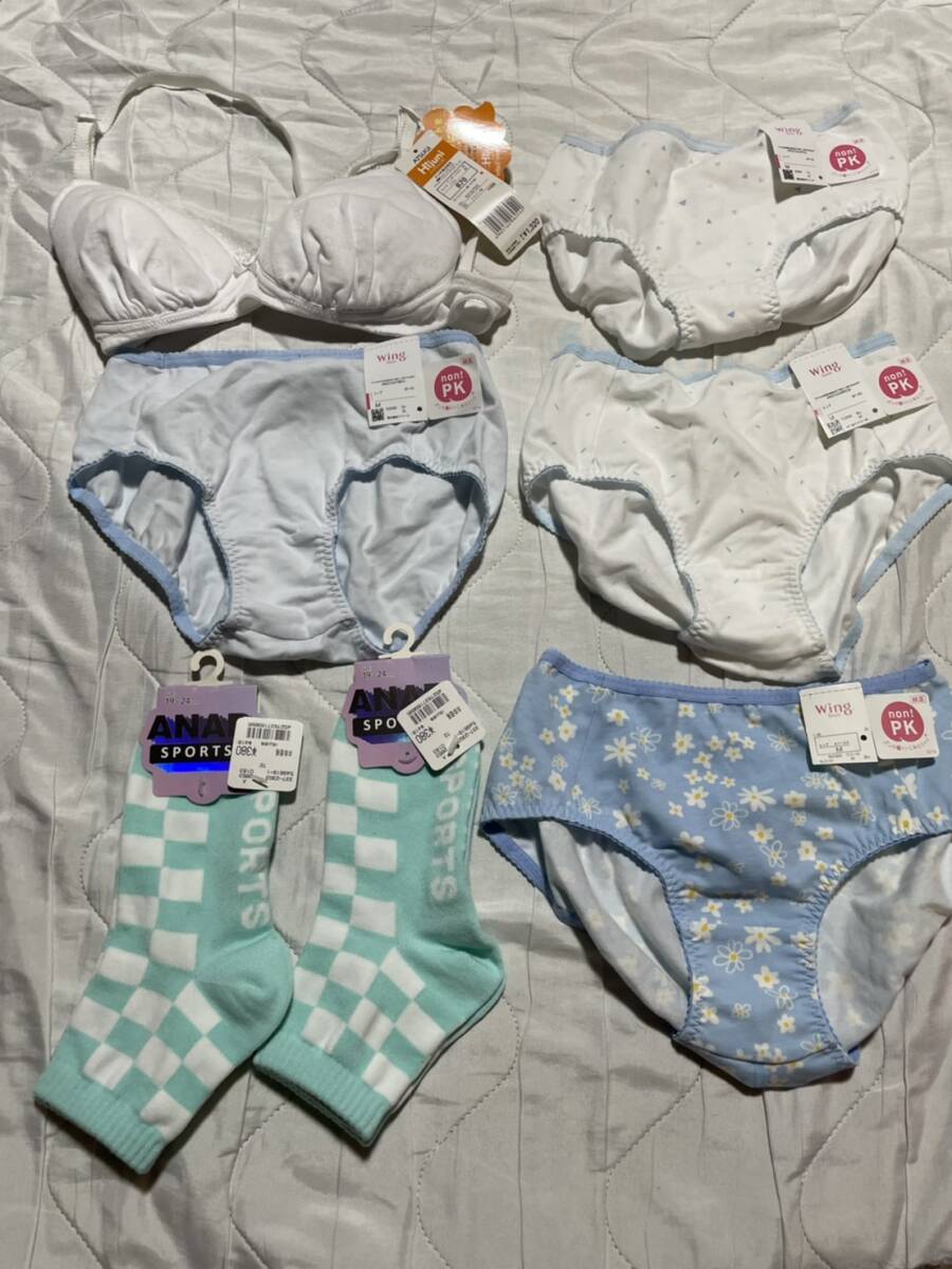 - HijuniのブラジャーB70 Wing teenのショーツ4枚 AMAP sportsのソックス2組新品