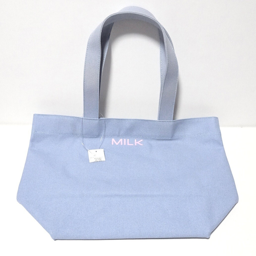 > 2068 送料無料 未使用タグ付き MILK トートバッグ ブルー キャンバス地 H27×W35×D14.5cm(持ち手除く) / ミルク トート バッグ