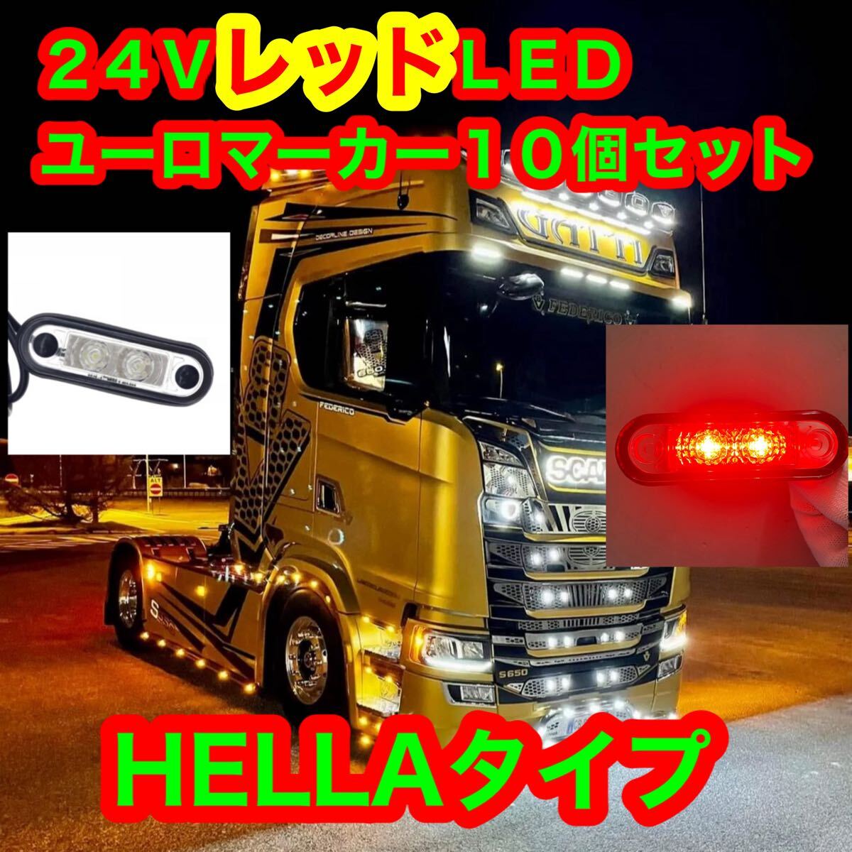 > ユーロ LEDマーカー レッド 赤 HELLAタイプ 10個 24v ユーロトラック 埋め込み パイプバンパー サイドバンパー