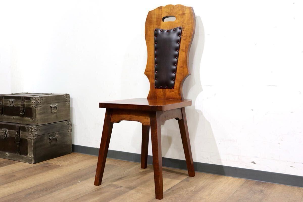 > GMHN262○えぞ民芸 / EZO ダイニングチェア サイドチェア 椅子 レザーバック 鋲打ち 無垢 樺材 和家具 和モダン レトロ アンティーク