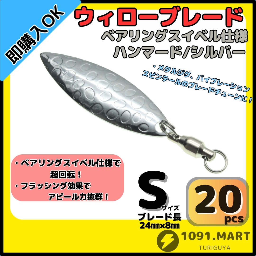 > 【送料150円】ウィローブレード ハンマード/シルバーSサイズ20個セットボールベアリングスイベル付きスピンテールブレードブレードチューン
