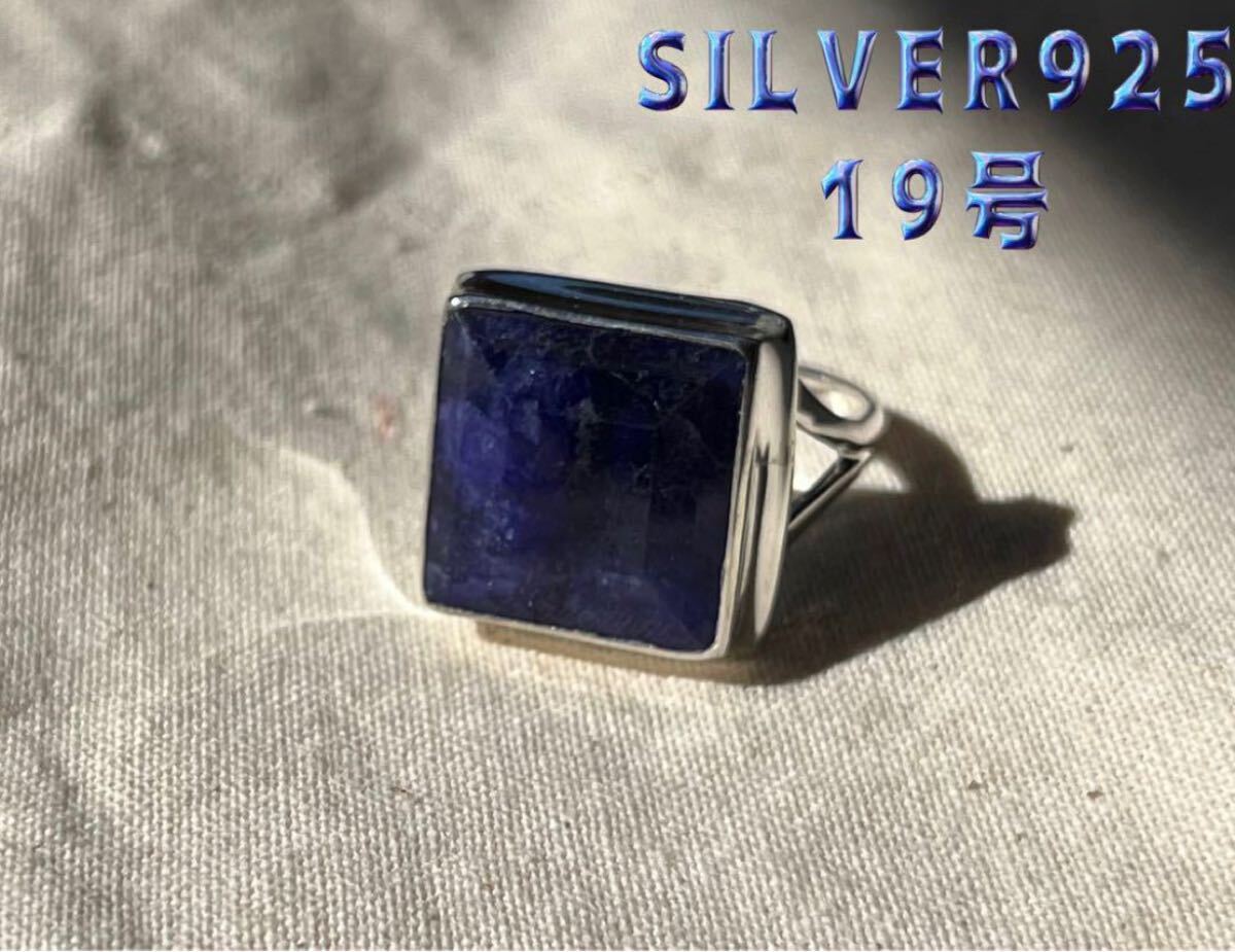 - R59AHB-S19ばサファイア宝石銀リング スターリングシルバー925リング 九月誕生石 19号ばs