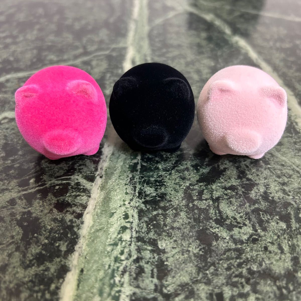 - 【美品】かわいい子ぶたの置物3個セット★3匹の子ぶた ベルベット調 ピンク 黒 ミニチュア 陶器 ぶたさん 置き物 インテリア 豚