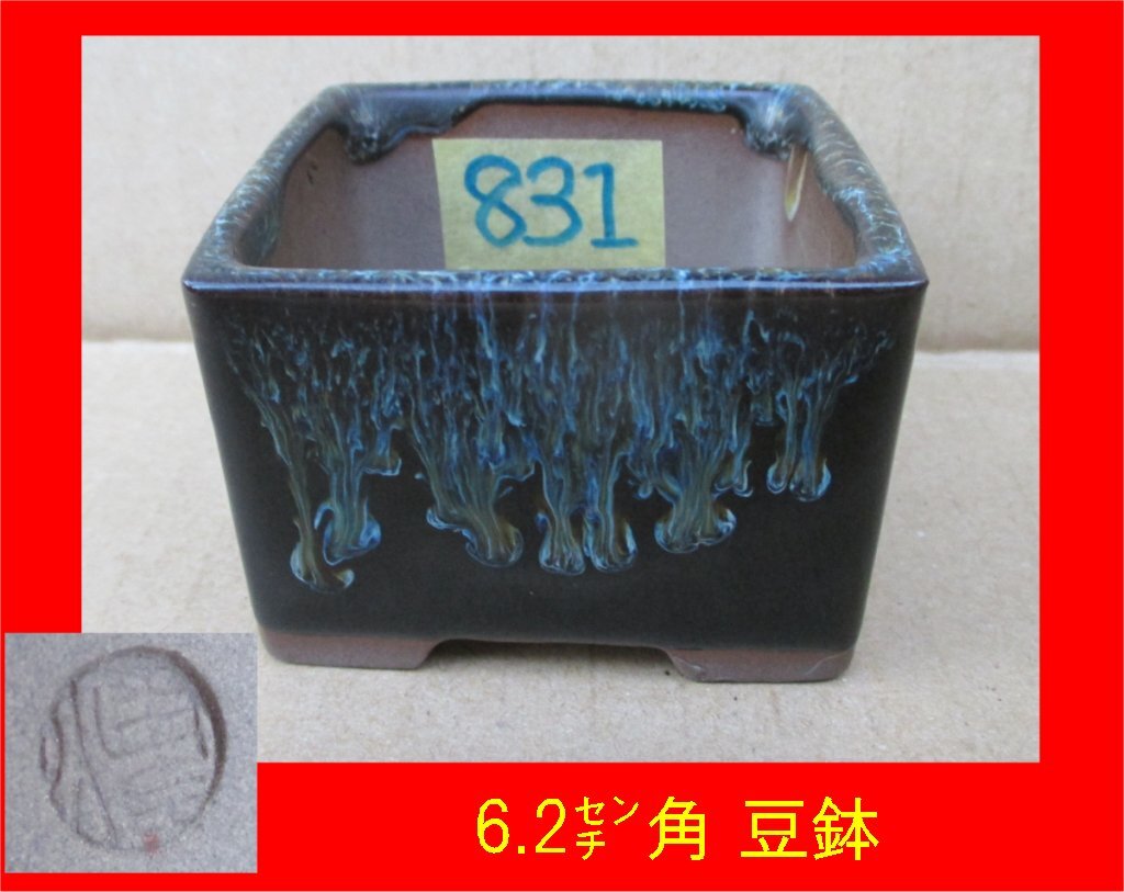 - 831 豆鉢 角型 6.2センチ角 高さ約4.2センチ 小盆栽などに 中古品に付き使用感アリ、画像にてご確認願います