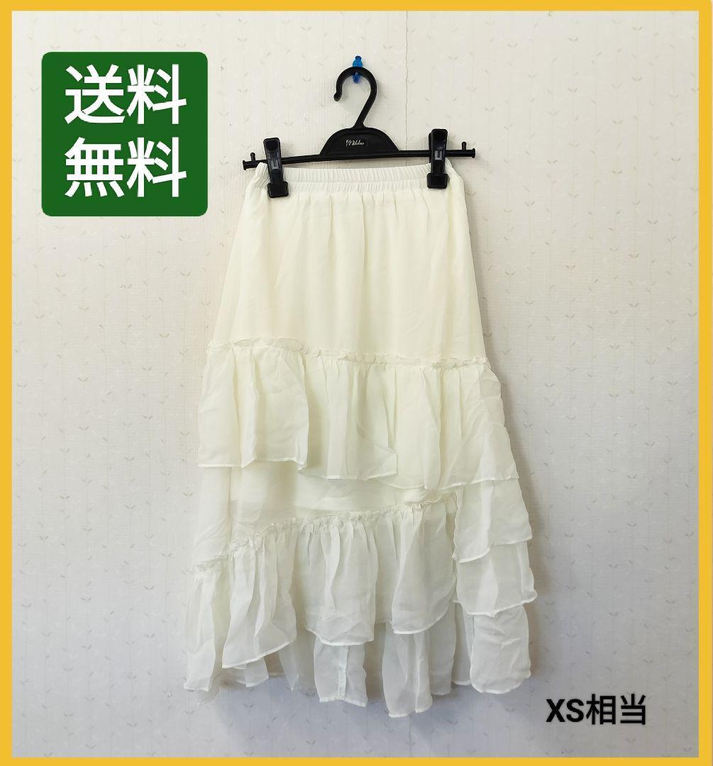 - 【送料無料】フリル ランダムティアード スカート アイボリー XS相当