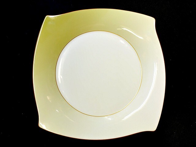 > 3QV売切!税無し☆ナルミ★スクエアディナー皿★フォルテ★ゴールドライン★約33cm★グリーン★洋食器★現状★現品限り★1025-7