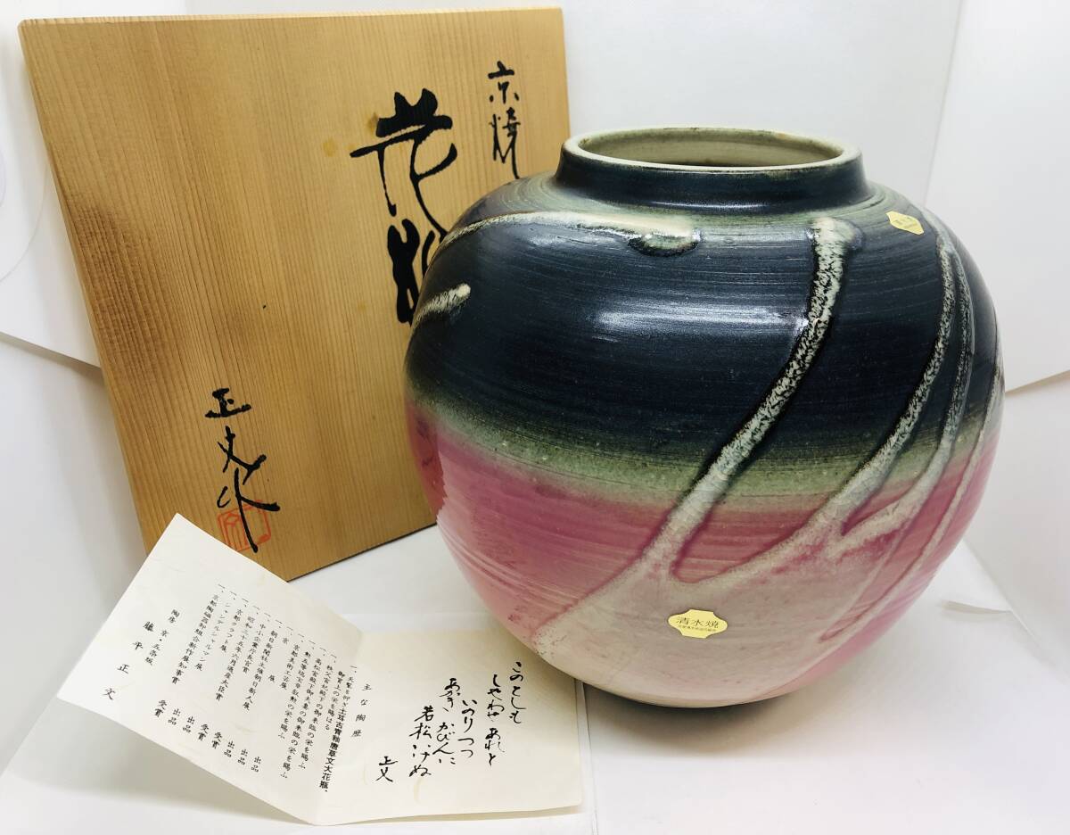 - 【未使用保管品】京焼 清水焼 藤平 正文作 花瓶 花入 花器 壷 壺 共箱