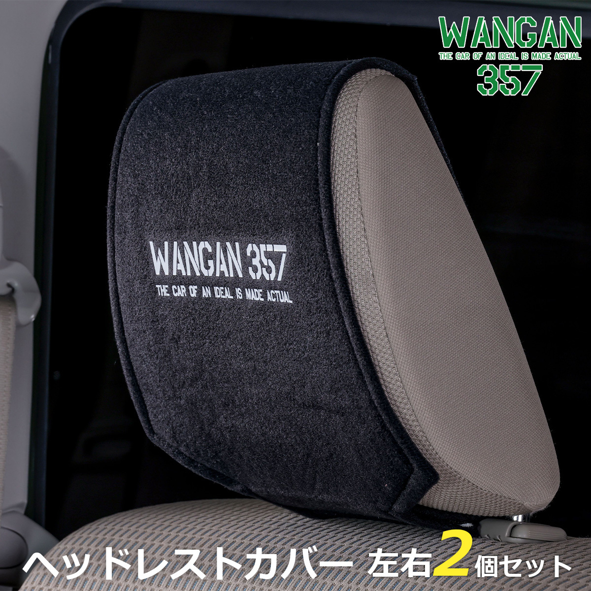 > WANGAN357 ヘッドレストカバー ブラック 黒 ロゴ入り 左右2個セット ヘッドレストの汚れ防止 シートアクセントにどうぞ。