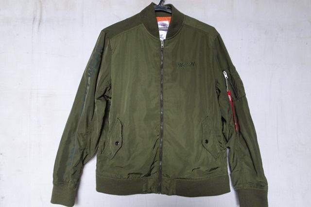 - VISION STREET WEAR/ジャンパー/MA-1風ブルゾン/前ジップアップ/バックプリント/ミリタリー/テープチャーム/緑系カーキ/Mサイズ(10/31R)