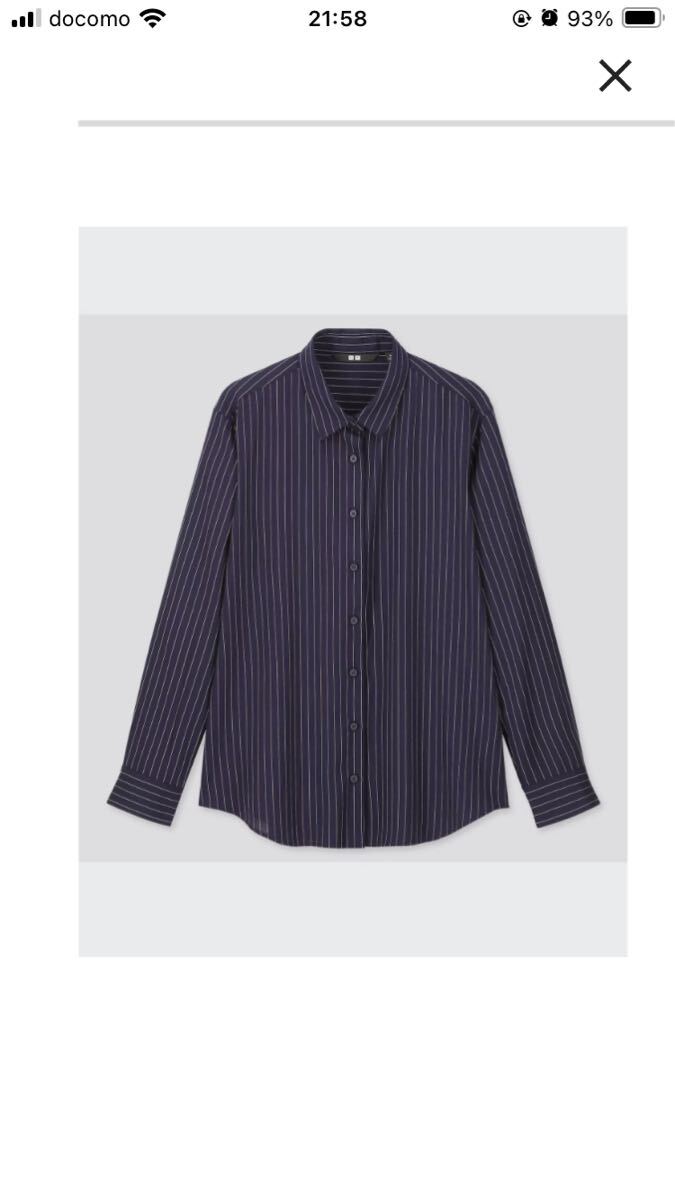 - ユニクロ WOMEN レーヨンシャツ 長袖 ストライプ ネイビー サイズL