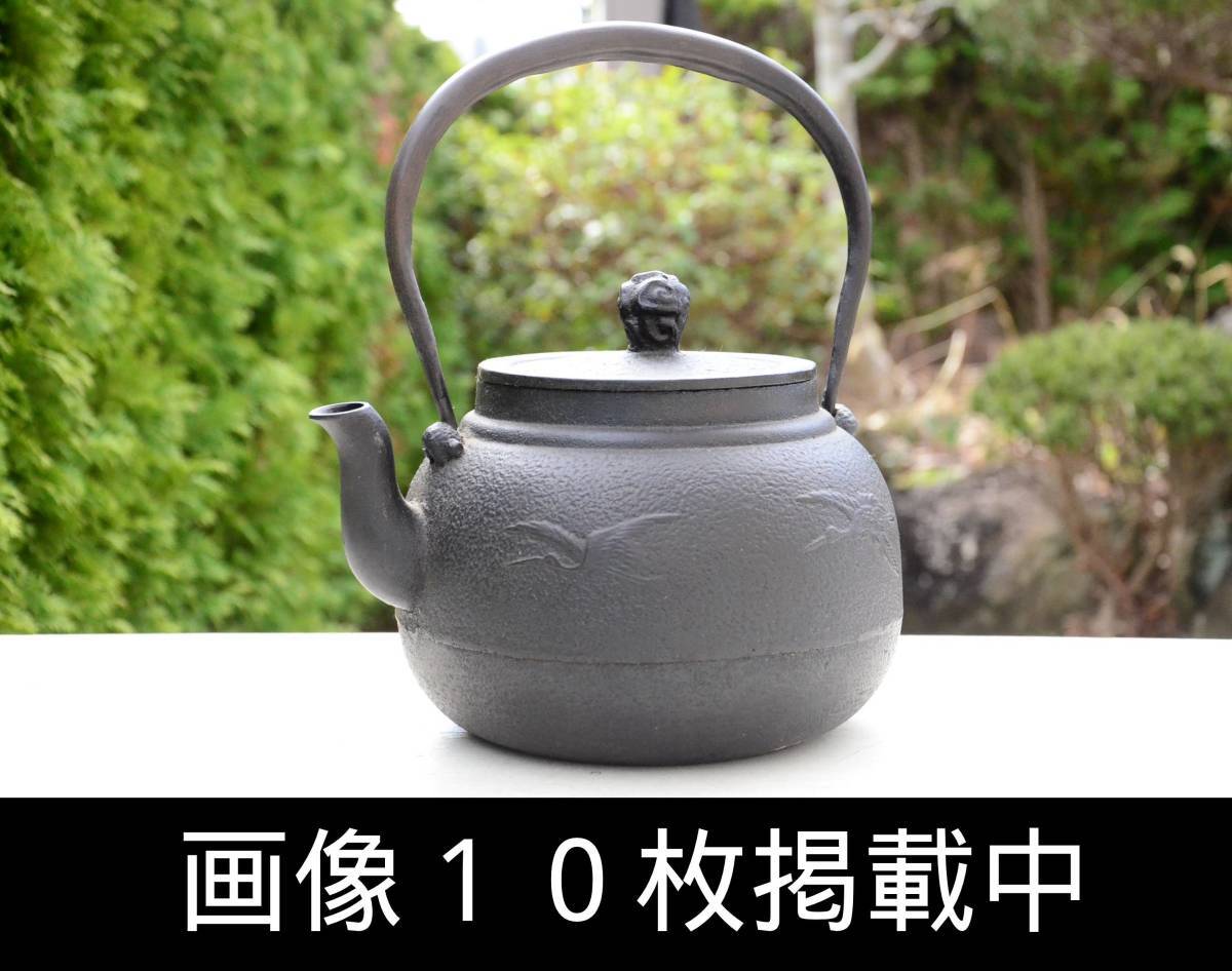 大振 鉄瓶 鶴松文 重さ約4kg 時代煎茶道具 湯沸かし 鋳物 画像10枚掲載中