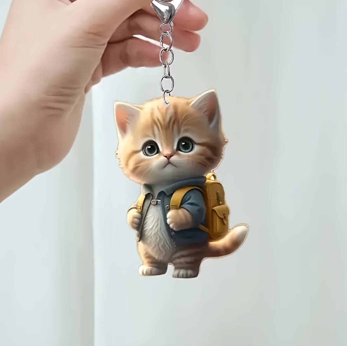 - キーホルダー かわいい 子猫 二足歩行 吊り下げ 平面 2D アクリル 5cm 登山 歩く ネコ おしゃれ おもしろ 車 鍵 ねこ インテリア t3247